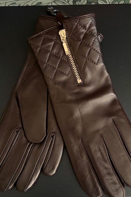 Handskar Lammskinn guldfärgad dragkedja, Mörkbrun