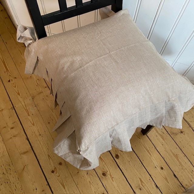 Beautiful and elegant seat cover in beautiful country style, create the right mansion style! Beige color with decorative flounce around. Tie behind.