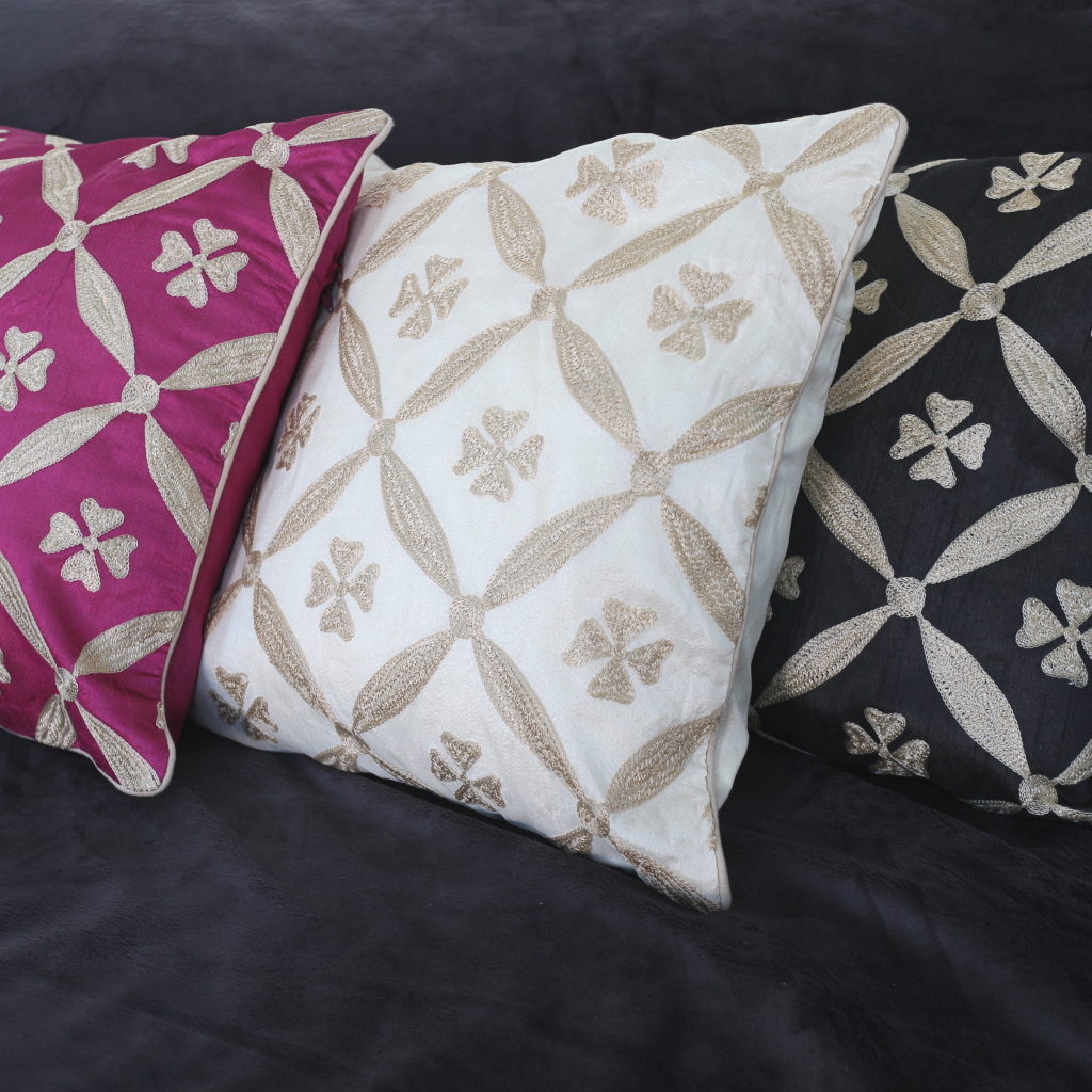 Create a beautiful stylish and elegant atmosphere in the classic Baroque style. Black color with decorative embroidered pattern in natural color with golden luster.