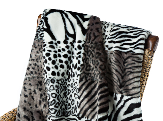 Lovely luxurious plaid faux fur. Grey/ black &white colour in lovely patchwork l. Warm and cuddly, soft and comfortable quality and stylish to have on the couch, bed or favorite chair. Swedish design. 150x 180 cm. Acrylic. Laundry 30 '.