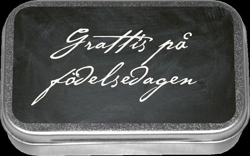 Happy Brthday( in swedish)- Licorice Lollipops in a Decorative Tin Box Surprise with a small but thoughtful gift! Our tasty licorice lollipops come in a cute tin box with the text "Happy brthday", perfect to have on your desk, in your bag or as a small gift. Details: Dimensions: 9.5 x 6 cm Contains delicious licorice lollipops Decorative and appreciated gift A small gesture with great love - perfect for mom at any time