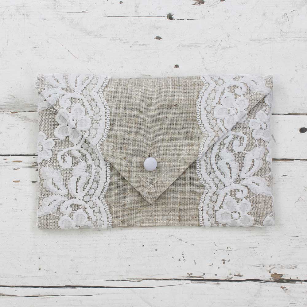 Lavender filled linen envelope with lace embroidery