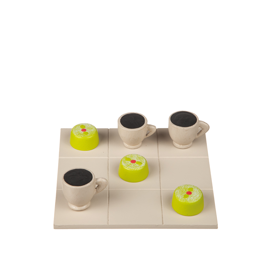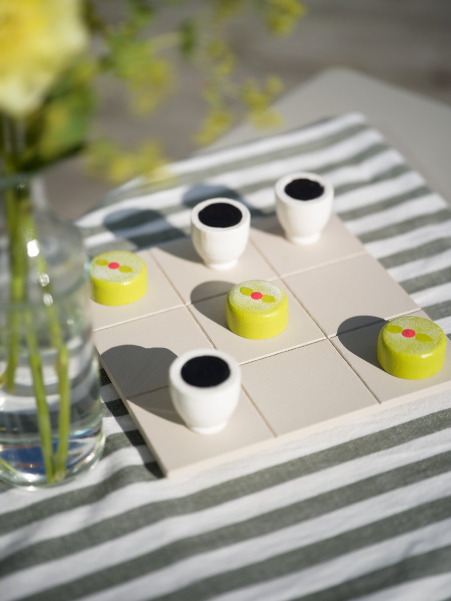 Vårt klassiska luffarschack / tre i rad i trä får en oemotståndligt charmig twist! Här möts tidlös spelglädje och svensk fikakärlek – med en kaffekopp och en prinsesstårta som pjäser att flytta runt på spelplanen. Hur sött? Väldigt. Hur kul? Ännu mer!
