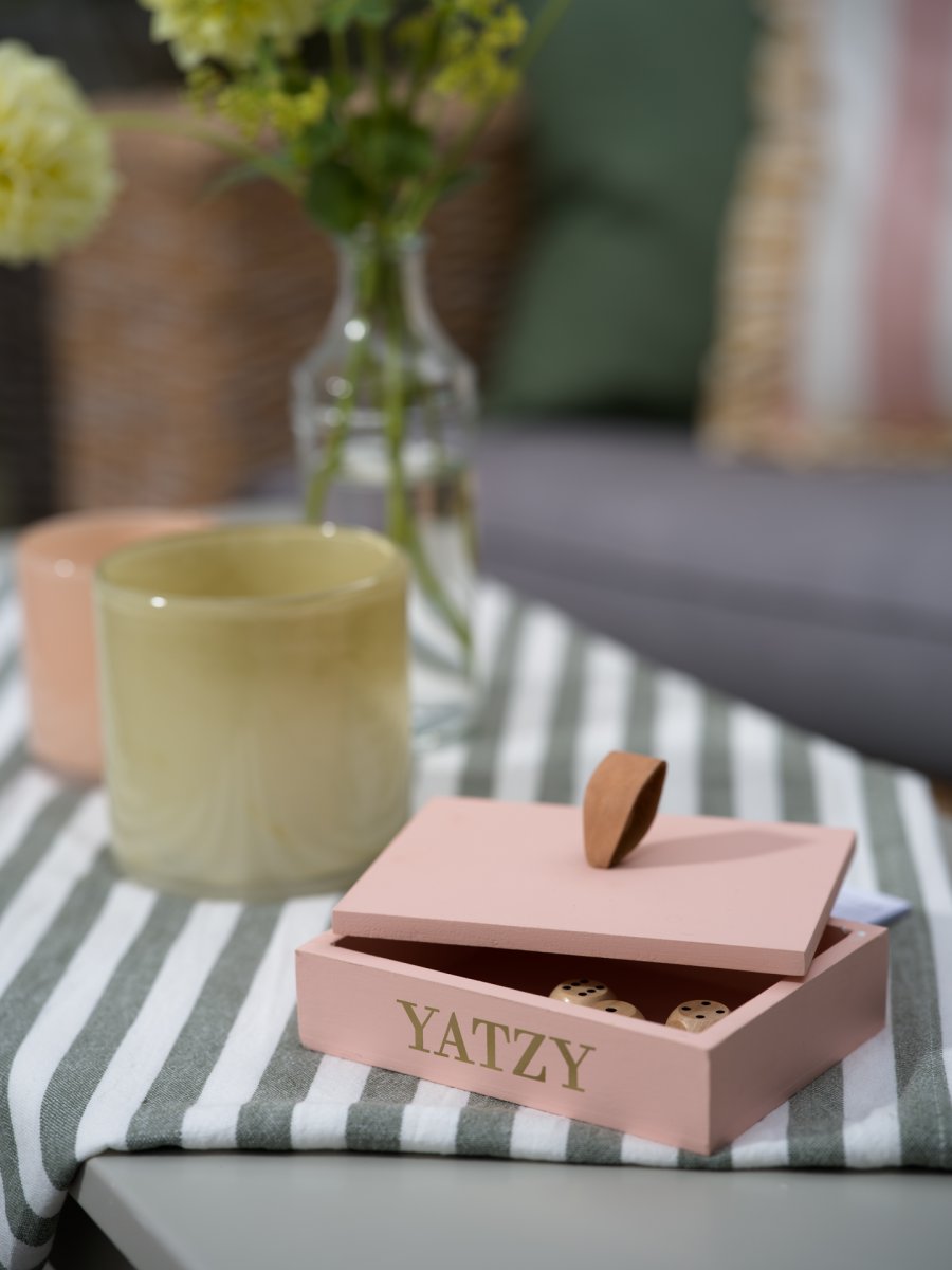 Yatzy i trälåda – ljusrosa pastellfavorit 🌸