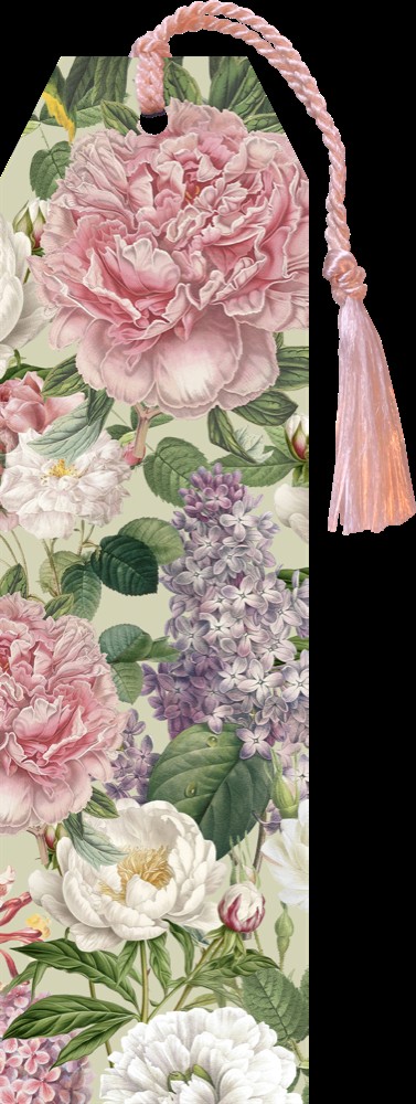 Vackert bokmärke med rosor & pioner med dekortativ matchande tofs.