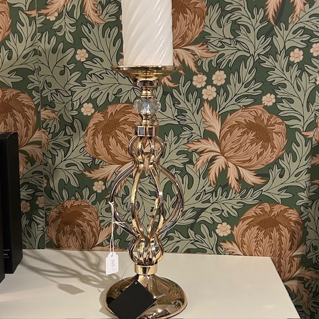 Snygg & elegant ljusstake i guldfärg med underbar design som även är en snygg inredningdetalj.