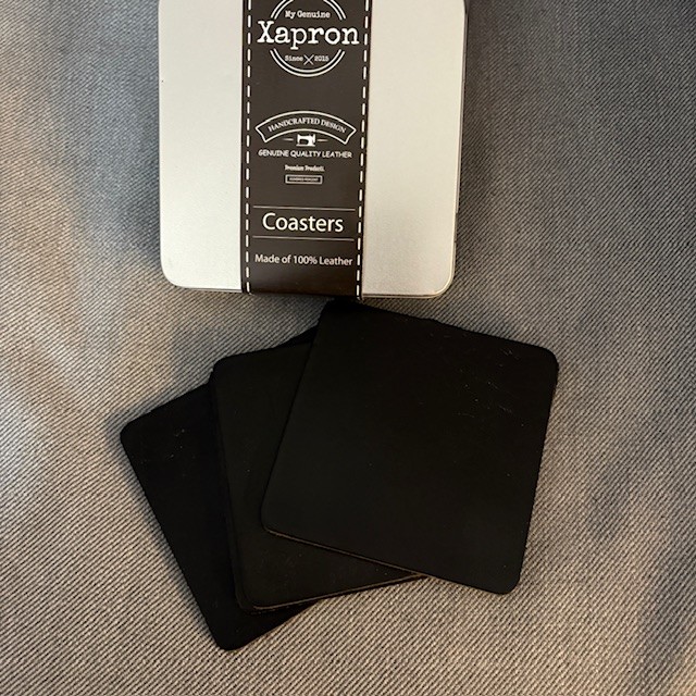 Handgjorda glasunderlägg i svart buffelskinn – rustik elegans till din dukning