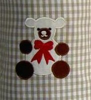 Klassiskt rutig servett/ prydnadsduk med dekorativa fransar i offwhite/beige färg med söt nallebjörn som applikation, PERFEKT PICKNICK SERVETT.. Svensk design by Micci.