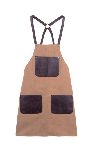 Den slitstarka canvasen tillsammans med detaljer i brunt konstläder skapar ett förkläde som både känns robust och bekvämt att bära under långa matlagningspass – ute i naturen eller hemma vid spisen. Den genomtänkta designen gör det lika praktiskt som snyggt.