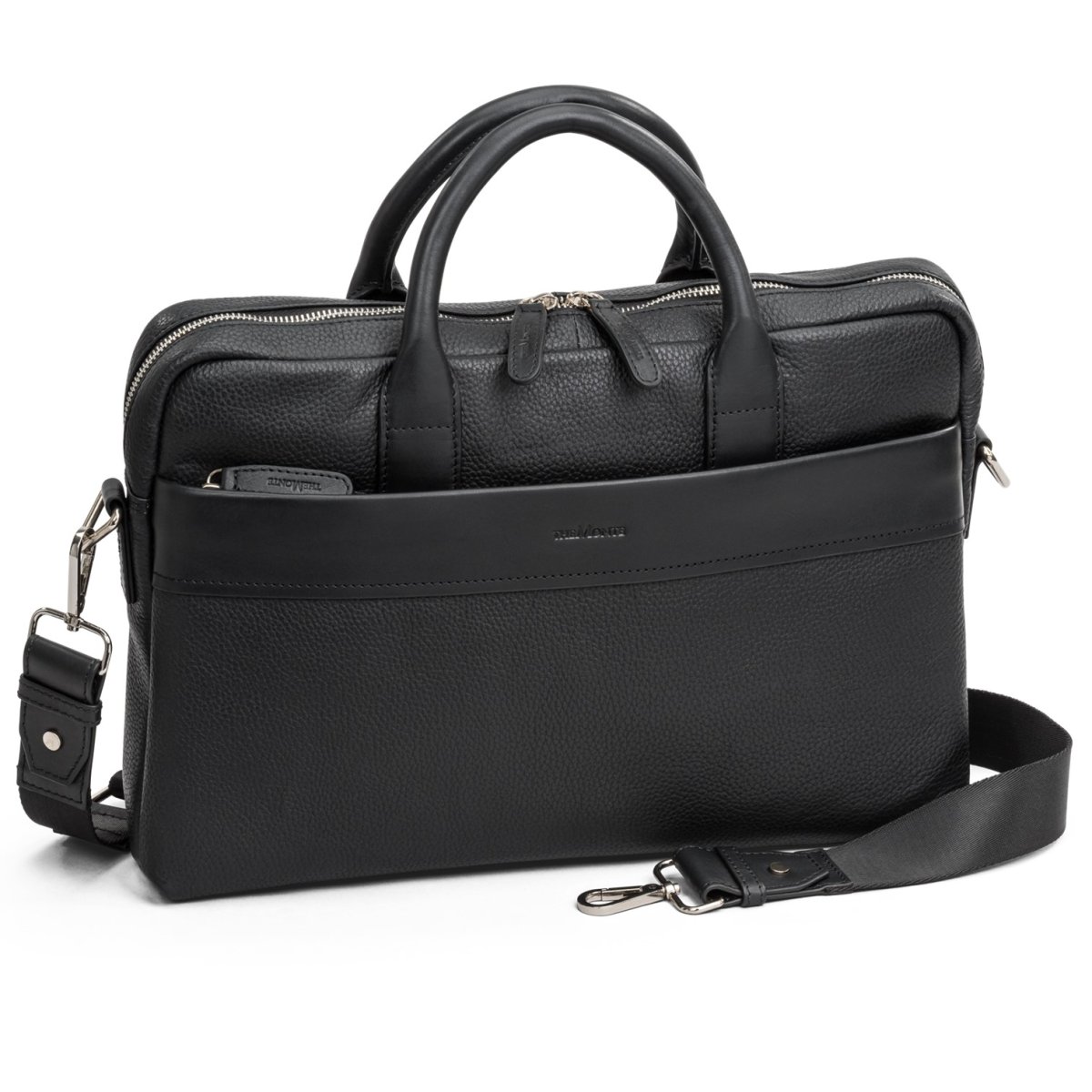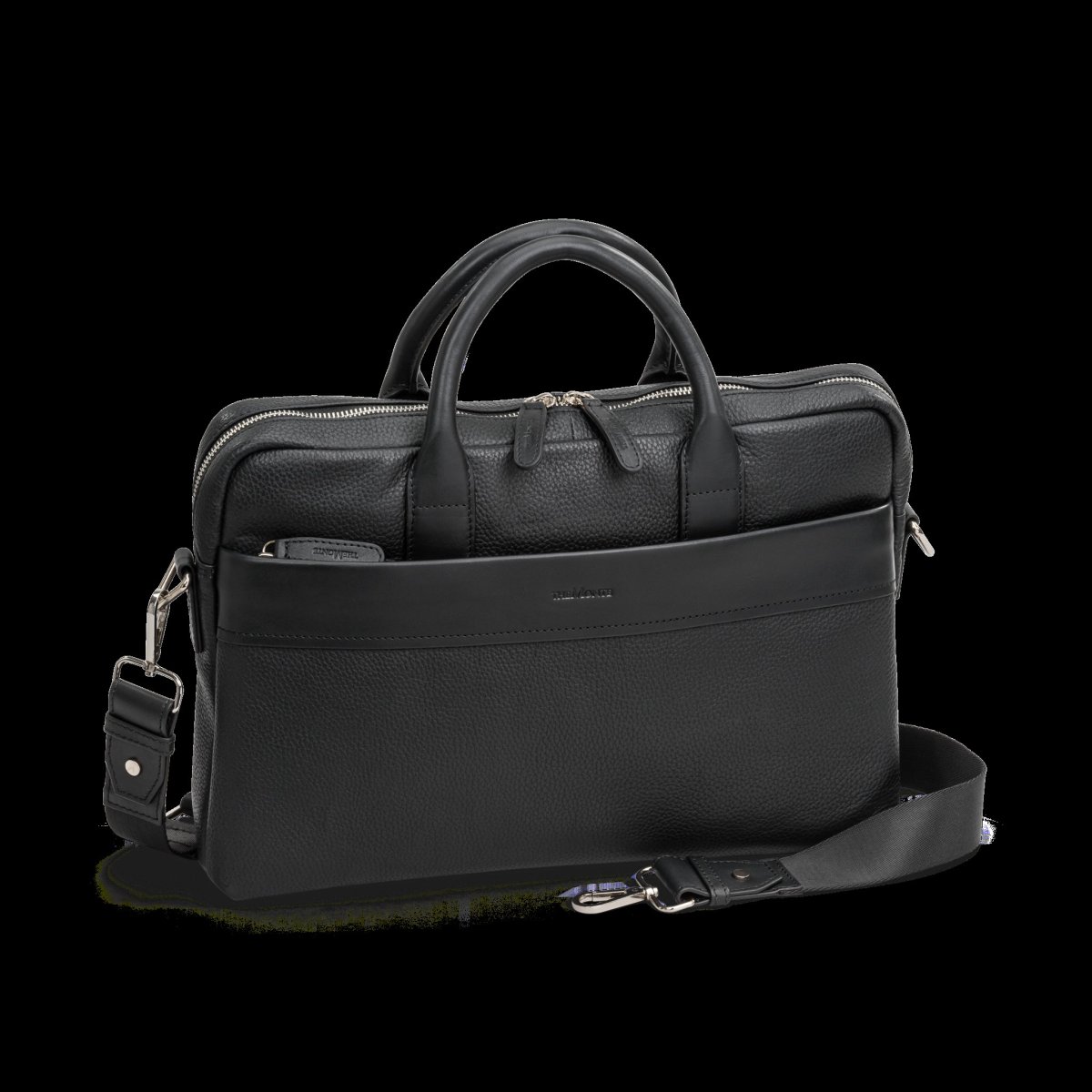 Portföljen erbjuder smarta detaljer utan att kompromissa med elegansen. Det rymliga huvudfacket med dragkedja rymmer alla dina arbetsredskap, medan den vadderade laptopfickan skyddar datorer upp till 17" (L 38 x H 22 cm). En inre blixtlåsficka håller småsaker organiserade, och på framsidan ger ett ytterfack med nedsänkt blixtlås snabb åtkomst till pennor och viktiga tillbehör.