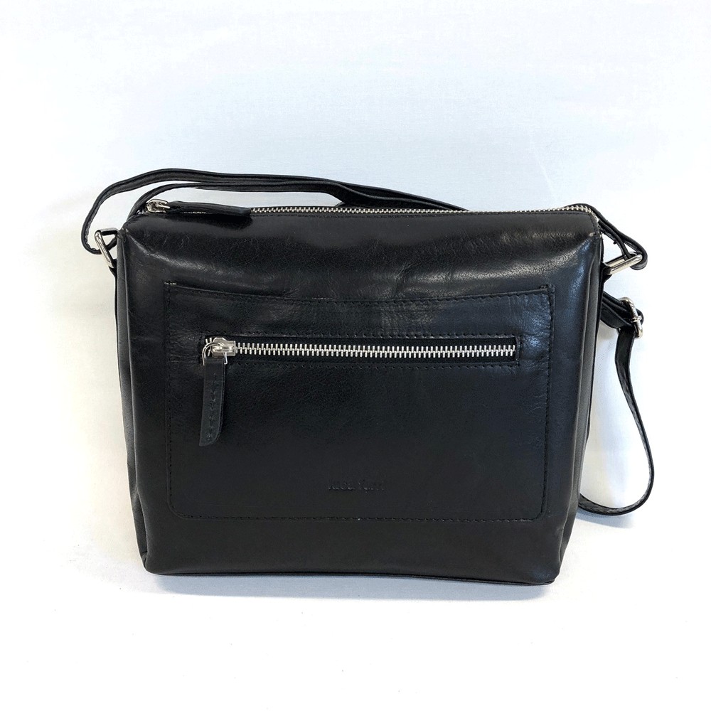 Klassisk axelremsväska från Luca Ferri med reglerbart axelband i svart färg, perfekt och rymlig vardagsväska.